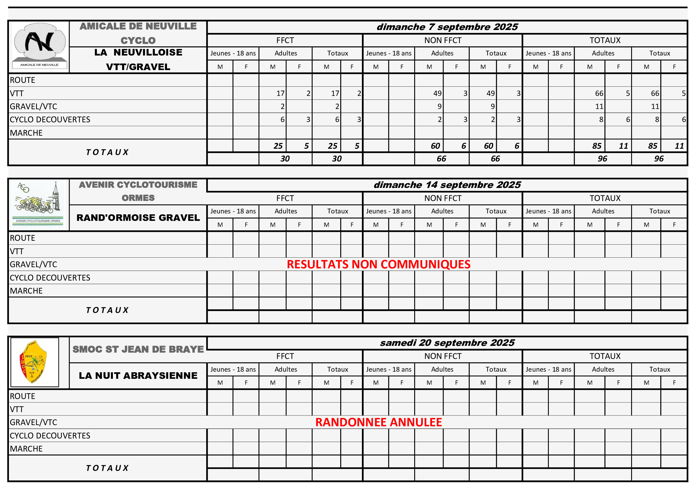 DE NOMBREUX RESULTATS N’ONT PAS ETE COMMUNIQUES – LES STATISTIQUES DE FIN D’ANNEE SERONT DONC FAUSSEES – DE PLUS, LES CLUBS CONCERNES NE DEVRAIENT PAS VOIR LEURS DEMANDES DE RANDONNEES 2026 VALIDEES (sauf régularisation rapide)